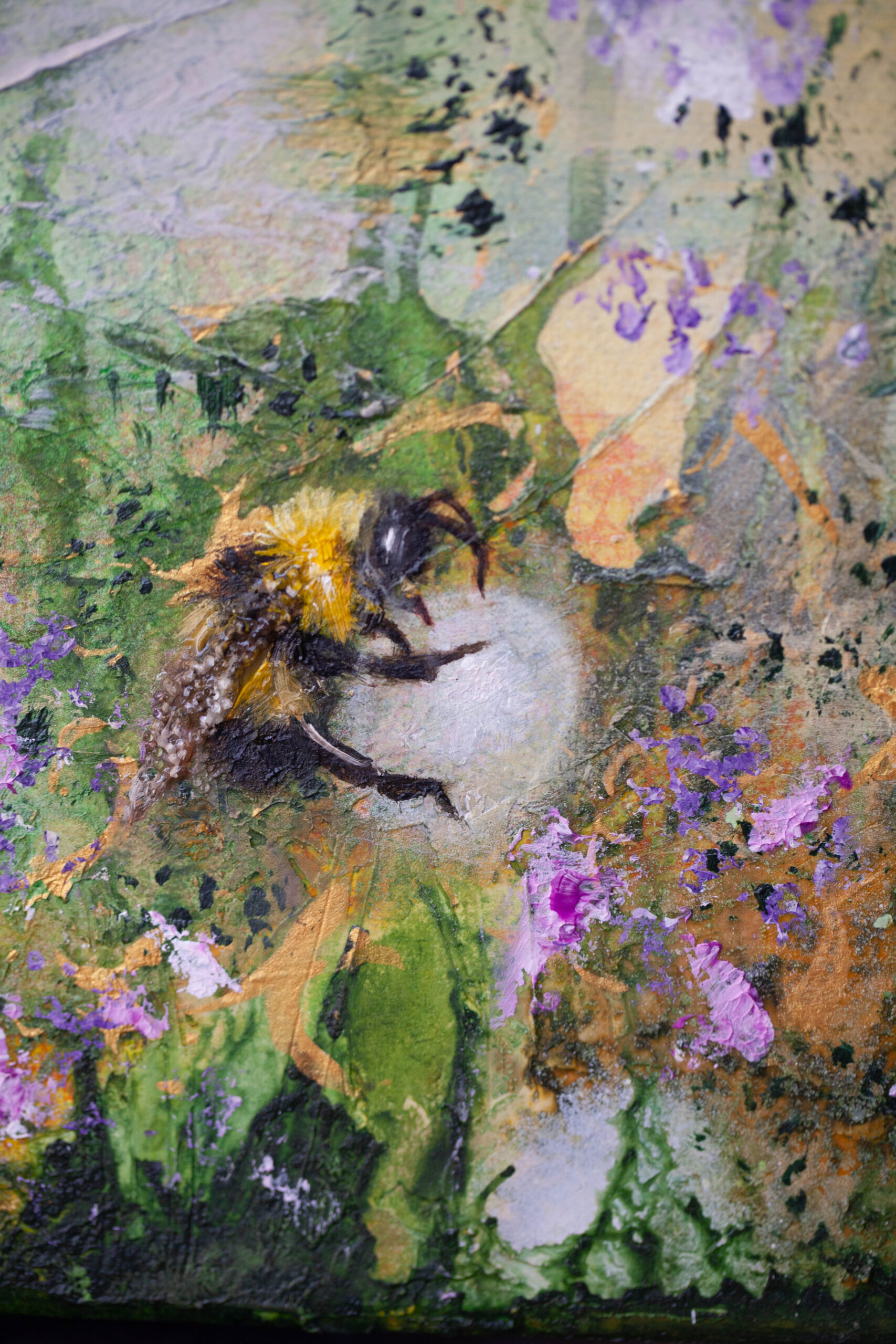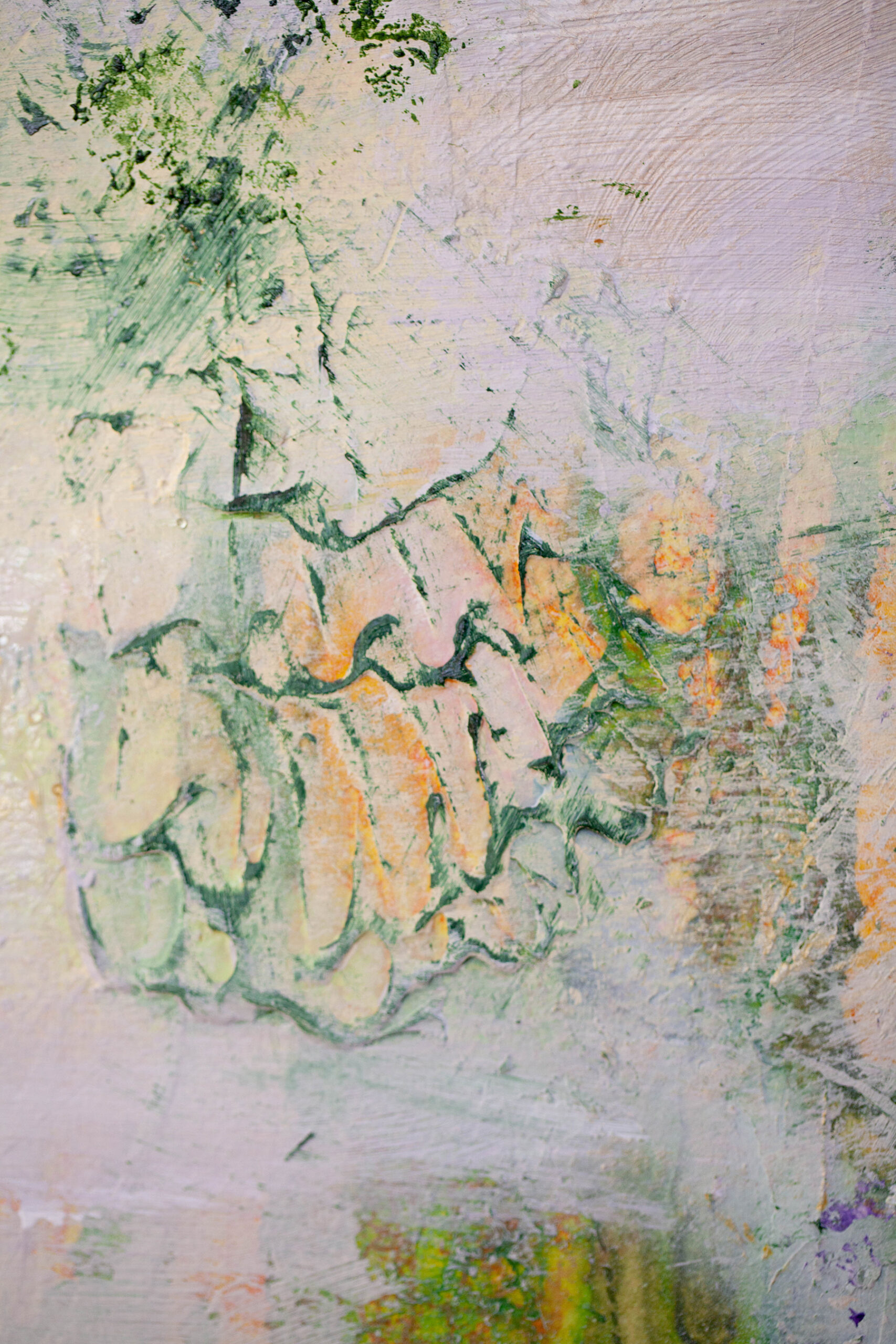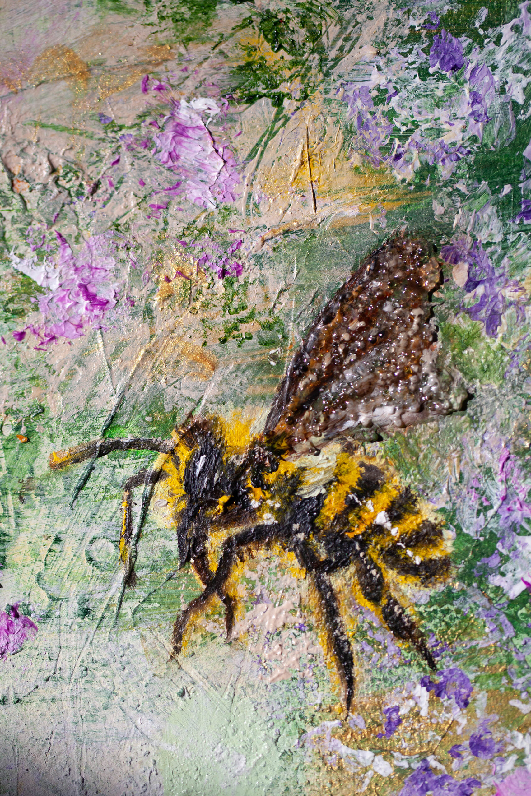 This painting evokes joy of creation and the quiet pleasure of existence. In this ethereal dance of green, yellow and violet you can find a lazy summer melody, suspended in delicate and dreamlike world. There is no rush here. Only presence.