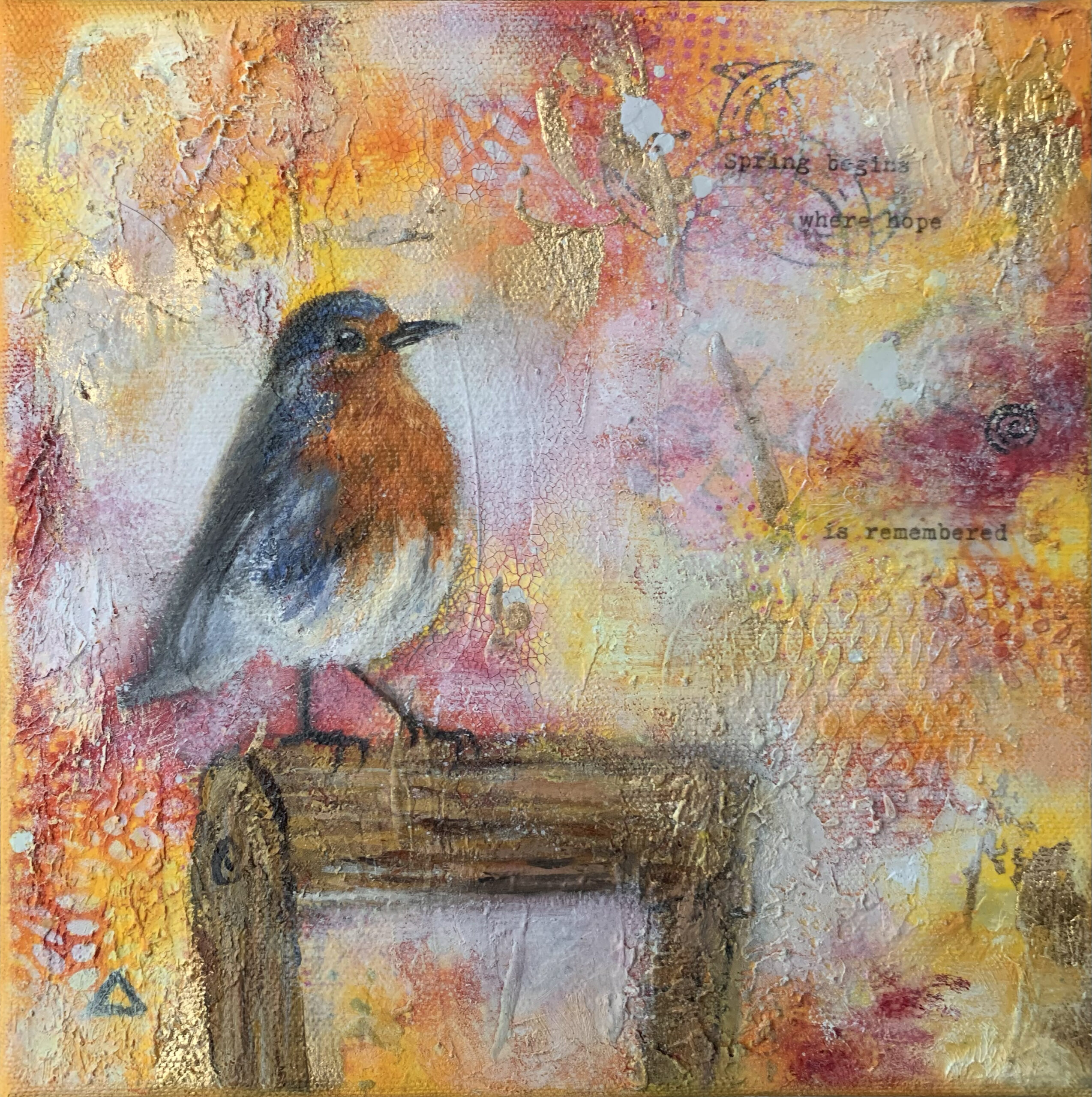 Like the ancient threshold between winter and spring, when the light begins to return in small but undeniable ways, Red Robin appears reminding us that life is already stirring beneath the frost. The quiet courage it takes to believe in what has not yet fully arrived. This piece has embedded quote:  “Spring begins where hope is remembered” and carries the energy of gentle beginnings and patient faith. The kind that grows stronger in silence.