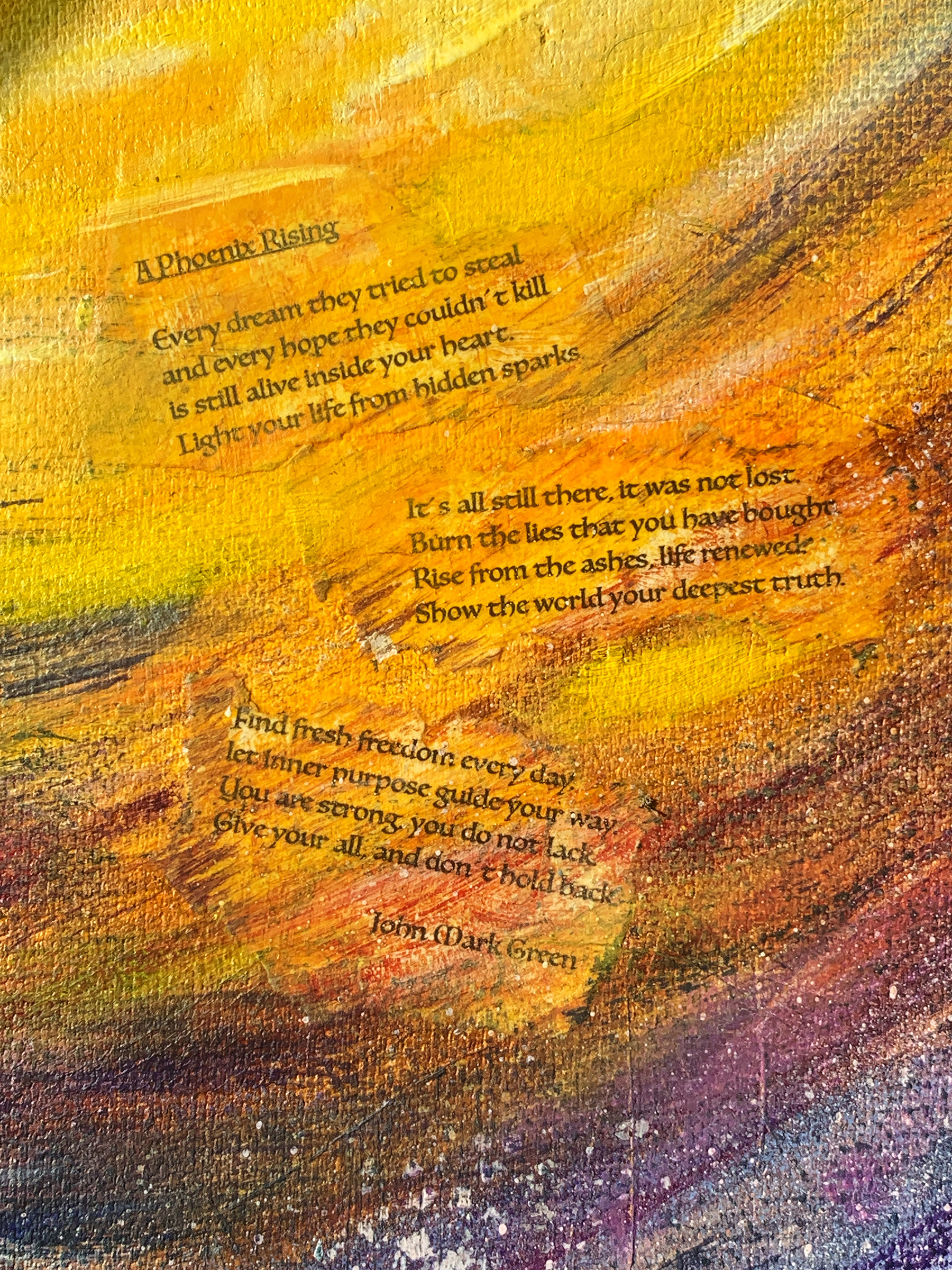 So grateful to the author, John Mark Green, for his beautiful work that matches perfectly the vibration of my painting.