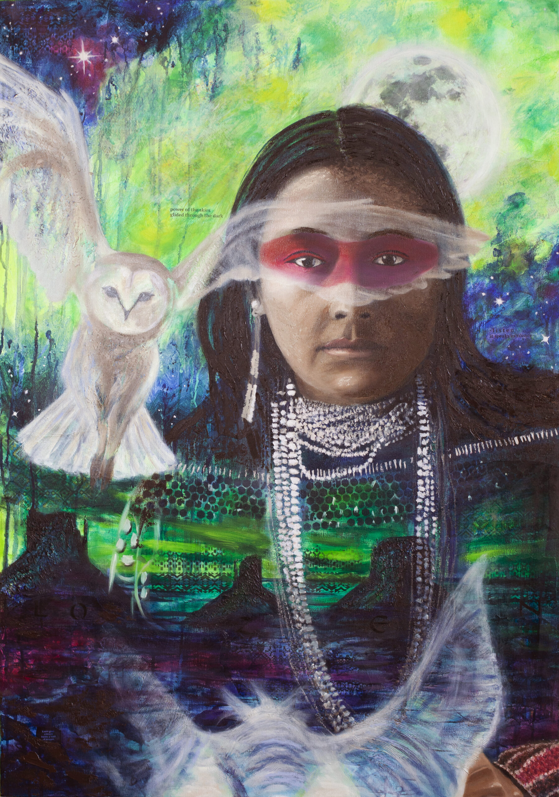 This piece is inspired in the spirit of Lozen, who fought against Mexican and American forces for 30 years protecting her people. She was skilled rider, shooter and could localise the enemy using her “supernatural powers.” Through the prayer she’s got her answers.