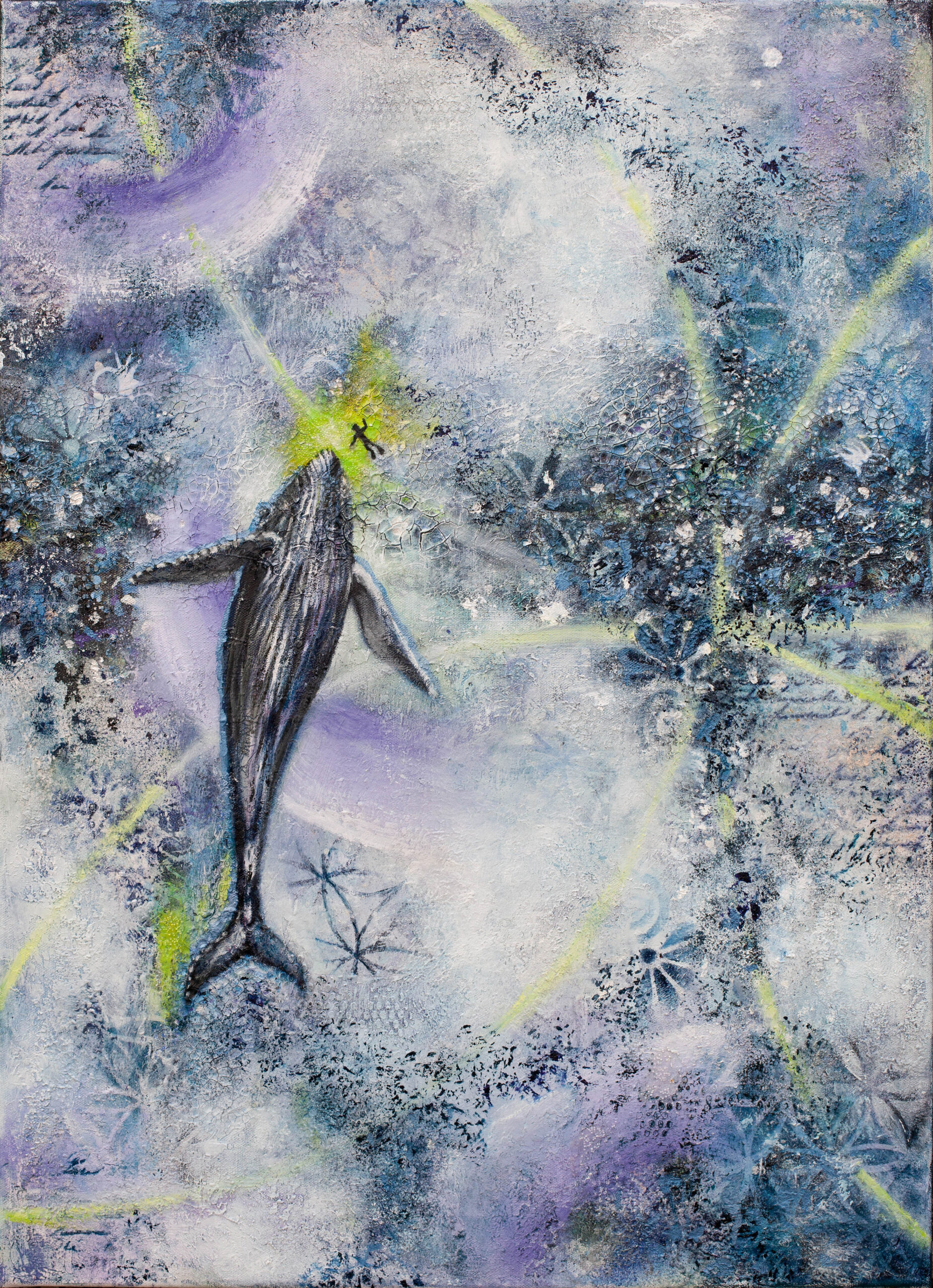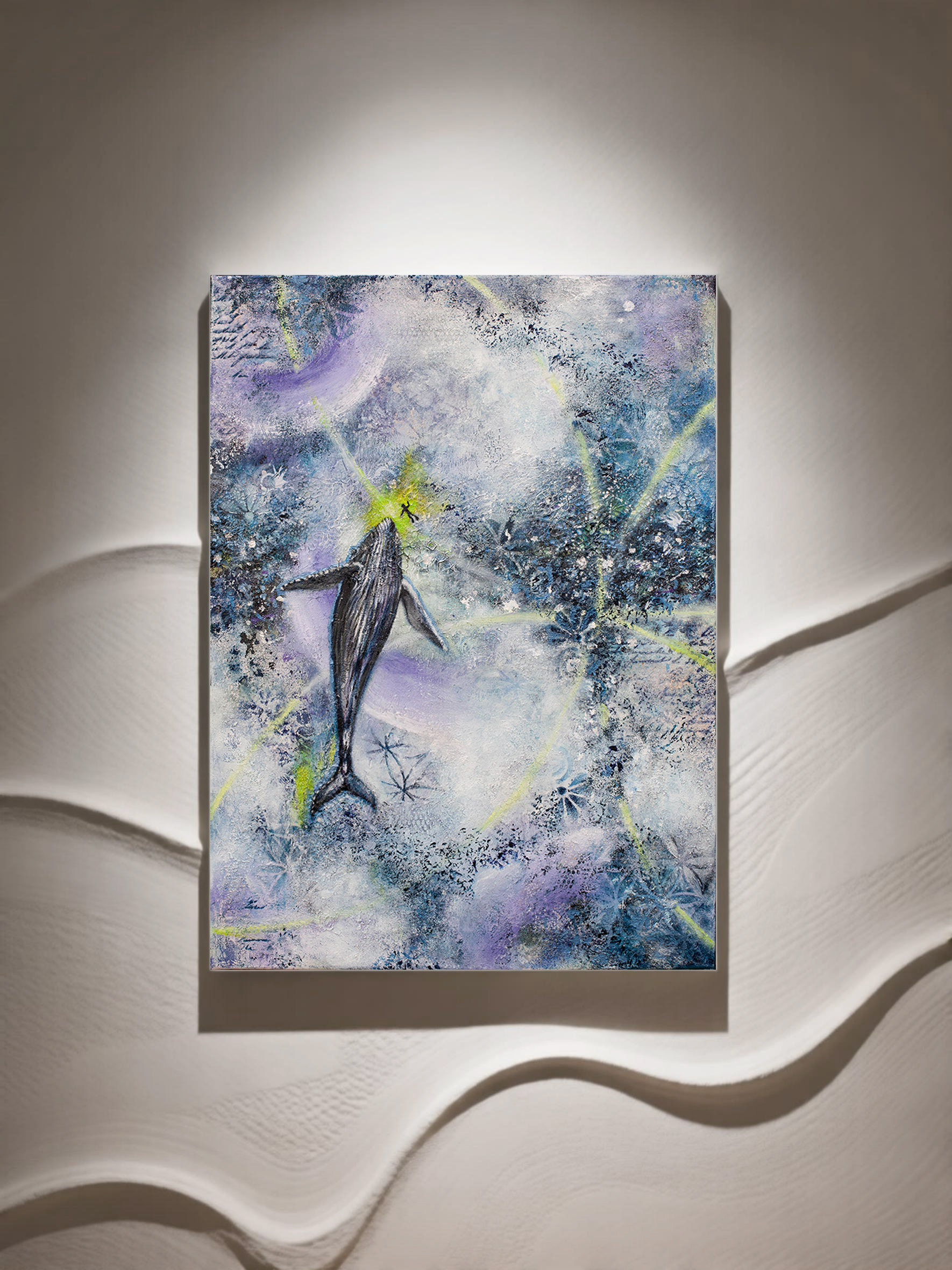 A bearer of Earth’s ancient memory floats between light and depth. It’s wisdom is not spoken but felt, carried through vibration, time and water. The Flower of Life unfolds as the hidden structure of existence, binding everything into one continuous whole. Are you, like a solitary diver, listening to his song?